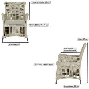 A corda nautica adiciona um toque de rusticidade moderna, enquanto o estofado impermeavel garante que sua poltrona esteja sempre impecavel, mesmo apos uma chuva inesperada ou um acidente com liquidos.
