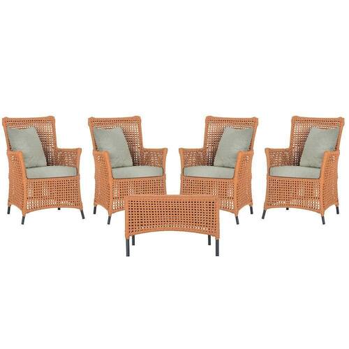 4 Poltronas E 1 Mesa Igapó Alumínio Preta Corda Náutica E3 Terra Cota