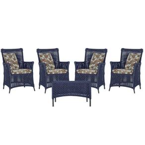 4 Poltronas E 1 Mesa Igapó Alumínio Preta Corda Náutica E6 Azul