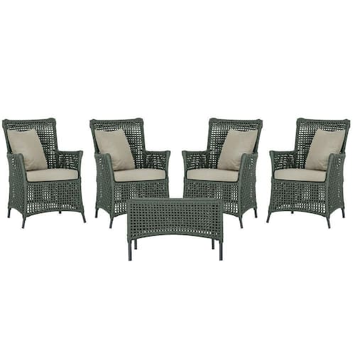 4 Poltronas E 1 Mesa Igapó Alumínio Preta Corda Náutica E7 Verde - Preto