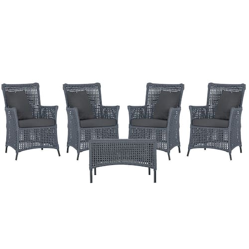 Itens Inclusos: 04 Poltronas e 01 Mesa Igapó em Alumínio Pintura Preta Corda Náutica Estofado 11