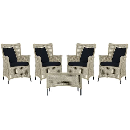 Itens Inclusos: 04 Poltronas e 01 Mesa Igapó em Alumínio Pintura Preta Corda Náutica Estofado 12