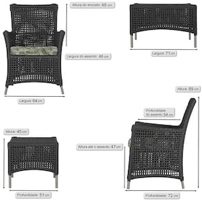 4 Poltronas e 1 Mesa Igapó em Alumínio - Preto