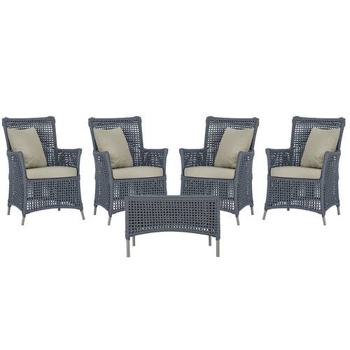 4 Poltronas e 1 Mesa Igapó em Alumínio - Prata