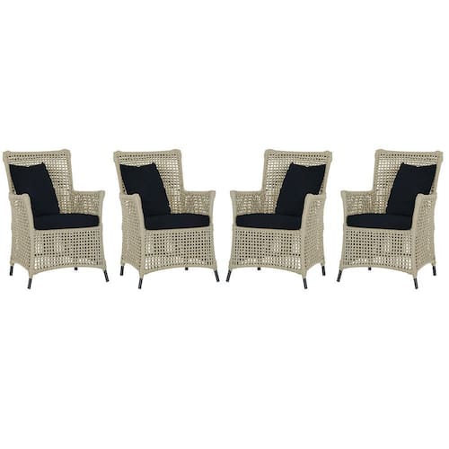 4 Poltronas Igapó Alumínio Micro Pintura Preta Corda Náutica Estofado 12 - Bege