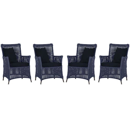 4 Poltronas Igapó Alumínio Pintura Marrom Corda Náutica E12 Azul