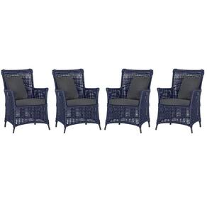 4 Poltronas Igapó Alumínio Pintura Preta Corda Náutica E11 Azul