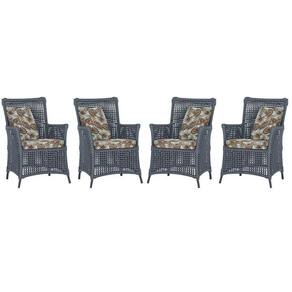 4 Poltronas Igapó Alumínio Pintura Preta Corda Náutica E6 Prata