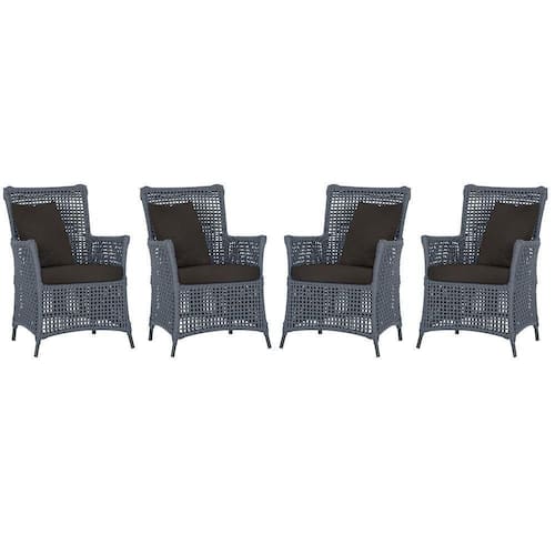 4 Poltronas Igapó Alumínio Pintura Preta Corda Náutica E9 Prata