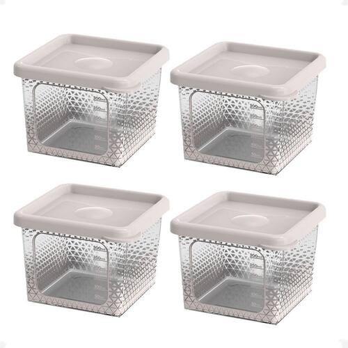 4 pote para alimentos transparente prisma 430ml com tampa Pote quadrado p potte - ad0088 x005fx000d