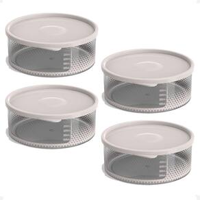 4 pote para alimentos transparente redondo 370 ml com tampa