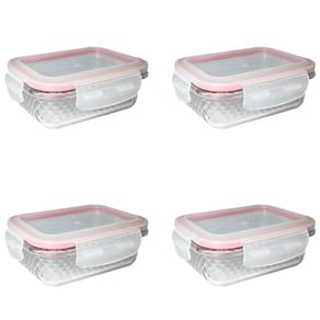 4 Potes De Vidro Diamond Retangular 370Ml Vermelho Hermético