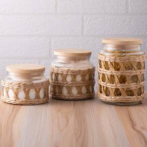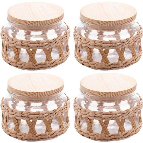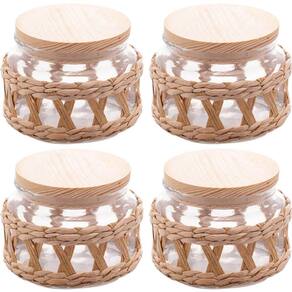 4 Potes Herméticos 350ml Vidro Sisal Tampa Madeira Wolff para Temperos Mantimentos .