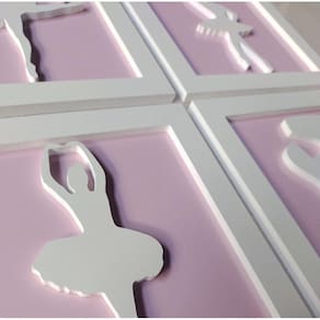 Material de moldura e figura: MDF Melamínico de alta resistência e durabilidade.