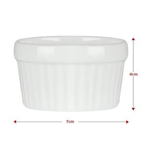 4 Ramekin de Porcelana Classic Branco 6cm x 4cm Lyor Sirva seus molhos e suas sobremesas com muito mais estilo com o Ramequim de Porcelana Esse lindo ramequim é feito todo em porcelana branca, com o tradicional relevo de listras verticais dessas peças. Com esse lindo Ramequim de Porcelana Branca as suas refeições ficam ainda mais chiques e apetitosas