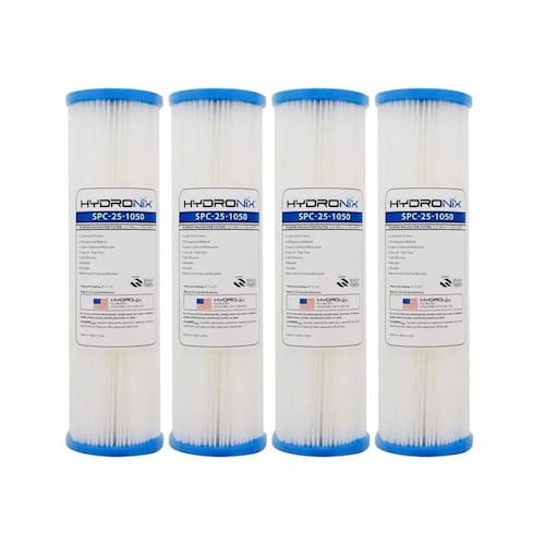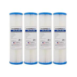 KIT COM 4 UNIDADESMarca Hydronix: Americana, melhor do mercado.Construido em polyester, o refil plissado lavável oferece maior remoção de sedimentos areia, lodo, barro, etc e custo de filtração reduzidos, bem como uma filtração superior à de outros bobinados ou lisos, pois sua superfície é maior, o que prolonga sua durabilidade, além da baixa perda de carga, o que permite alcançar grandes vazões.A fim de assegurar uma maior durabilidade, periodicamente deverá ser feita a manutenção. Sua limpeza se dá com jatos de água nas ranhuras e de dentro para fora, mas para tal não deve ser utilizado produtos químicos.Especificações- Modelo: SPC-25-1050-temperatura: 4,5ºC a 51,7ºC-meio filtrante: polyester, sem colas ou aditivos, resistentes a substâncias químicas.-tubo central: PP-tamanho Real: 10 x 2.1/2 25cm x 6,3cm -grau de Retenção: 50 micra-vazões:2.300 litros/hora