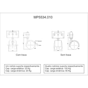 - Produto Composto Por: (01) Um Kit Com (04) Quatro Rodízios. (02) Dois Com Trava.