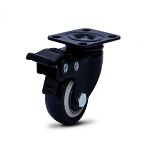 Rodízio 2" polegadas, com design inovador alinhado com resistência e conforto, fabricado em aço com dupla pista de esferas e acabamento em pintura epóxi preto banda em PVC com duplo rolamento de esferas de precisão, o que melhora significativamente o desempenho do rodízio. rodizio giratório para moveis, carrinhos, cachepôs, vasos, capacidade de suportar até 50 Kg indicado para Cargas leves Características técnicas: Diâmetro da roda (pol): 2" ( 50,8 mm) com freio: sim Freio Easy Lock - F1 Freio de ação total fabricado em aço carbono, acionamento suave e seguro. Largura da banda da roda : 25 mm Comprimento do cubo (mm): 28 mm diâmetro cubo: 5 mm Raio de giro do rodízio (mm): 21mm Altura total (mm): 74mm Diâmetro do eixo (mm) Capacidade de carga (kg): 50 kg Placa: Dureza: 75 shore Temperatura de trabalho: -10 a 50 indicado: piso em boa conservação, concreto liso, cerâmica, aço, metal, madeira, Proteção ao piso, trabalho silencioso, água, contato ocasionado com o vapor, cavacos metálico, óleo industrial, álcool, tração manual.
