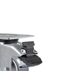 Rodizio giratório fabricado em chapa estampada e cabeçote com dupla pista de esferas, proporcionando resistência e durabilidade, com acabamento zincado.