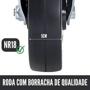 Confortável e resistente, proporciona facilidade para movimentação em pisos irregulares, absorve vibrações e ruídos. Possuí excelente sistema de freio atendendo as exigências normativas, garantindo a segurança do usuário. rodízio em conformidade com a nbr 6494 e nr 18 .