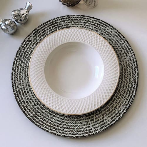 Com design moderno e elegante o sousplat cumpre uma das principais regras de etiqueta, que é nunca deixar a mesa desguarnecida durante a troca de pratos;
