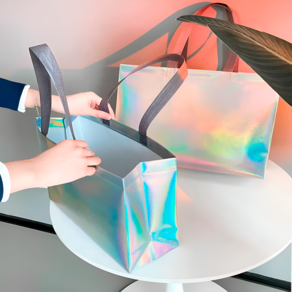 CARACTERÍSTICAS PRINCIPAIS:- Bolsa laminada policromática com acabamento brilhante e moderno.- Ideal para presentes, lembranças, brindes e uso em lojas.- Material resistente e de alta durabilidade.- Alças reforçadas para transporte seguro e confortável.- Reutilizável e fácil de limpar.- Dimensões: 32cm x 27cm x 10cm.- Material: Laminado plástico com efeito holográfico.- Peso aproximado: 20g.TEMOS SEU PRODUTO EM ESTOQUEENVIAMOS SEU PEDIDO EM ATÉ 1 DIA ÚTILAPÓS A CONFIRMAÇÃO DO PAGAMENTO.