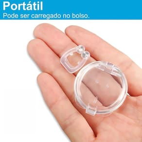 COMO USAR 1 - Ao receber o seu Clipe Nasal, retire da caixinha transparente e lave com água e sabão neutro; 2 - Após a limpeza, coloque o clipe no nariz cerca de 20 minutos antes de dormir; 3- Após utilização lave e guarde seu clipe na caixa de armazenamento. OBSERVAÇÕES: Feito de material de silicone de qualidade. Muito fácil de usar e fácil de limpar. Vem com uma caixa de viagem para armazenamento seguro e fácil de transportar. Material: plástico não-tóxico & silicone Cor: Transparente