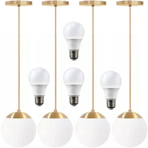 4 x Luminárias Lustre Pendente 215cm Jabuticaba Globo Vidro 15cm Teto Gimpo PJ15 + 4 Lâmpadas 9W