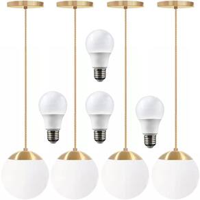 4 x Luminárias Lustre Pendente 215cm Jabuticaba Globo Vidro 15cm Teto Gimpo PJ15 + 4 Lâmpadas 9W