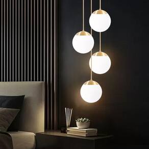 4 X Luminárias Lustre Pendente 215Cm Jabuticaba Globo Vidro