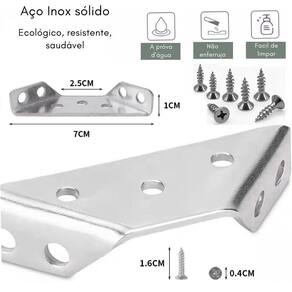 Kit com 40 Cantoneiras Inox 7 furos + 280 parafusos soberba para fixação. Transforme seus projetos de móveis com o conjunto de conectores de canto de aço inox da NilosDecor. Este produto é ideal para quem busca durabilidade e resistência, proporcionando uma estrutura sólida para suas criações. Com a compatibilidade com parafusadeiras elétricas, a montagem se torna uma tarefa simples e rápida, permitindo que você se concentre na parte criativa do seu trabalho. O modelo inclui 40 cantoneiras inox e 280 parafusos, todos projetados para garantir a máxima estabilidade e segurança. A qualidade do aço inox garante que seus móveis não apenas tenham um ótimo acabamento, mas também resistam ao desgaste do tempo. É a escolha perfeita para profissionais e entusiastas do design de interiores que desejam elevar o padrão de seus projetos. A NilosDecor se destaca pela sua atenção aos detalhes e pela excelência em seus produtos. Ao optar por este conjunto, você investe em uma solução que combina funcionalidade e estética, ideal para qualquer ambiente. Não perca a oportunidade de aprimorar suas criações com um produto que realmente faz a diferença. Conteúdo da Embalagem: 40 Cantoneiras inox para móveis 7 furos 280 Parafusos soberba Philips Imagens meramente ilustrativas. ========================================== de 90 dias para defeitos de fabricação ========================================== Marca: Não Informado