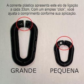 - Constituído: Corrente Plástica em Polipropileno. Possui elos para junção a cada 33cm.
