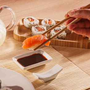 - Produzida em bambu 100% natural, a petisqueira pode apresentar nós e fibras irregulares características da própria matéria prima, assim como variação de tonalidades e brilho que não são consideradas defeito;