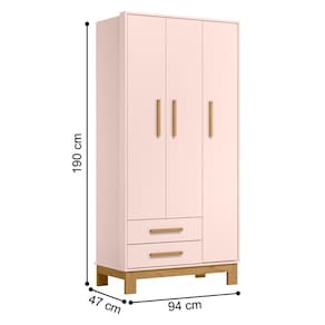 O Guarda Roupa é feito em MDP 15mm,possui duas gavetas com corrediças metálicas e três portas garantindo um espaço amplo para acomodar os seus pertences e roupas.