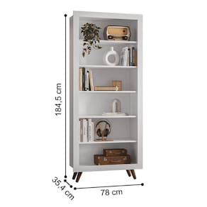 Feito em MDP 15mm, possui seis prateleiras móveis, pés com design retrô .