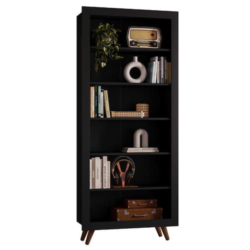 Feito em MDP 15mm, possui seis prateleiras móveis, pés com design retrô .