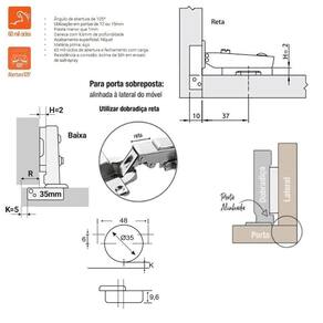 Dobradiça 105º Reta Slide On