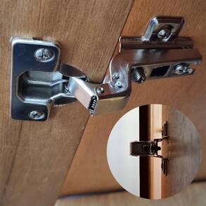 A Dobradiça tem a montagem simples, realizada através do deslizamento da dobradiça sobre o calço, que possui regulagem lateral vertical e horizontal para melhor alinhamento das portas e é fixada no calço de fixação no sistema slide-on (deslizante)
