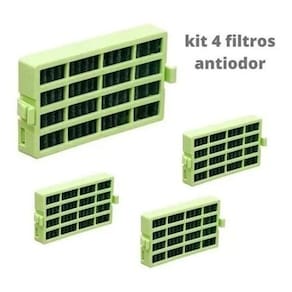 Kit 4 filtros antiodor e antibactéria compatível para geladeiras Brastemp e Consul linha bem estar. Purifica o ar, proporcionando um ambiente mais saudável, livre de fungos, bactérias e de mal odor. Necessário desbloquear o painel da geladeira e manter a tecla trocar filtro pressionada por aproximadamente 3 segundos para que a luz se apague após a troca.Proteção para
