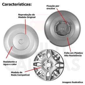 ITENS INCLUSOS: - Quatro 4 Calotas Centro de Roda com Logo.
