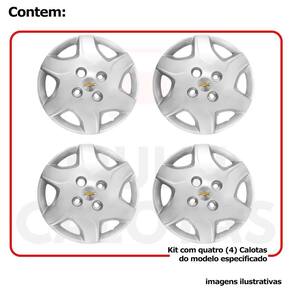 4x Calota Chevrolet Celta Corsa Aro 13 com Emblema 042cb Calota em Plástico de Alta resistência, Fabricado pela Grid Calotas com os mesmos padrões e exigências da montadora. Com logotipo incluso. SERVE: GM Corsa - todos GM Celta - todos GM Classic - todos CARACTERÍSTICAS: - Fabricado em Plástico Resistente - Com dupla camada de verniz - Resistente a água e calor - Feito de acordo com os padrões da montadora - Fixação: por Parafusos - Furação: 4x100 - Cubo: Baixo - Cor: Prata - Referência: 042cb - Marca: Grid Calotas ITENS INCLUSOS: - Um 1 Kit com Quatro 4 Calotas com Emblema Incluso. DIMENSÕES Unitário - Diâmetro: 37 cm - Altura: 4 cm INSTALAÇÃO A instalação é feita de forma simples, podendo ser feita por você mesmo. Não necessita retirar todos os parafusos. de 30 dias para defeitos de fabricação. SOBRE O ENVIO Marca: Não Informado Ean: 7896835839211