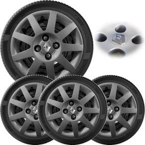 4x calota clio logan sandero 2009 a 2013 aro 14 grafite Calota em plástico de alta resistência, Fabricado pela top mix com os mesmos padrões e exigências da montadora. Com logotipo incluso.