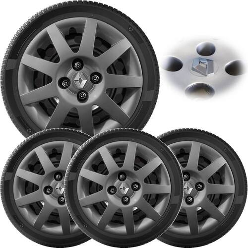 4x calota clio logan sandero 2009 a 2013 aro 14 grafite Calota em plástico de alta resistência, Fabricado pela top mix com os mesmos padrões e exigências da montadora. Com logotipo incluso. Características: - fabricado em plástico resistente - com dupla camada de verniz - resistente a água e calor - feito de acordo com os padrões da montadora - fixação: por parafuso - cubo: padrão - cor: cinza grafite - referência: ap6009 - marca: top mix Itens inclusos: - um 1 kit com quatro 4 calotas com emblema. Dimensões unitário - diâmetro: 39 cm - altura: 4 cm Instalação A instalação é feita de forma simples, podendo ser feita por você mesmo. Não necessita retirar todos os parafusos. de 30 dias para defeitos de fabricação. Marca: Não Informado
