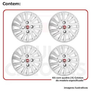 4x calota fiat mille palio siena uno aro 14 emblema 093cb Calota em plástico de alta resistência, Fabricado pela grid calotas com os mesmos padrões e exigências da montadora. Com logotipo incluso. Jogo de calotas para a linha fiat para roda de ferro aro 14. Não serve nos fiat strada - fiat palio adventure - fiat nova fiorino Características: - fabricado em plástico resistente - com dupla camada de verniz - resistente a água e calor - feito de acordo com os padrões da montadora - fixação: por parafusos - furação: 4x100 - cubo: baixo - cor: prata - referência: 093cb - marca: grid calotas Itens inclusos: - um 1 kit com quatro 4 calotas com emblema incluso. Dimensões unitário - diâmetro: 39 cm - altura: 4 cm Instalação A instalação é feita de forma simples, podendo ser feita por você mesmo. Não necessita retirar todos os parafusos. de 30 dias para defeitos de fabricação. Marca: Não Informado Ean: 7899287062985
