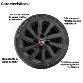 4x calota fiat nova strada 2021 aro 14 preto 167ca Calota em plástico de alta resistência, Fabricado pela grid calotas com os mesmos padrões e exigências da montadora. Com logotipo incluso. Jogo de calotas para linha fiat nova strada . Serve: Fiat strada 2021 Características: - fabricado em plástico resistente - com dupla camada de verniz - resistente a água e calor - feito de acordo com os padrões da montadora - fixação: por parafuso - cubo: alto - cor: preto - referência: 167ca - marca: grid calotas Itens inclusos: - um 1 kit com quatro 4 calotas com emblema. Dimensões unitário - diâmetro: 41 cm - altura: 4 cm Instalação A instalação é feita de forma simples, podendo ser feita por você mesmo. Não necessita retirar os parafusos. de 30 dias para defeitos de fabricação. Marca: Não Informado