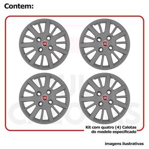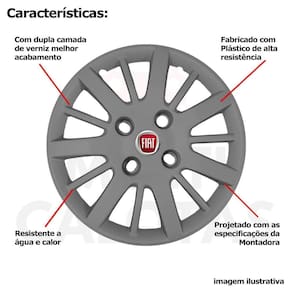 4x calota fiat palio novo uno siena aro 14 grafite 073cb Calota em plástico de alta resistência, Fabricado pela grid calotas com os mesmos padrões e exigências da montadora. Com logotipo incluso.