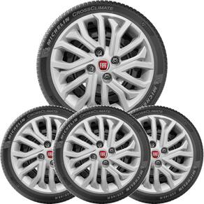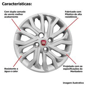 4x calota fiat punto palio grand siena aro 15 com logo 296cp Calota em plástico de alta resistência, Fabricado pela grid calotas com os mesmos padrões e exigências da montadora. Com logotipo incluso. Características: - fabricado em plástico resistente - com dupla camada de verniz - resistente a água e calor - feito de acordo com os padrões da montadora - fixação: por parafusos - furação: 4x100 - cubo: padrão - cor: prata - referência: 296cp - marca: grid calotas Itens inclusos: - um 1 kit com quatro 4 calotas com emblema incluso. Dimensões unitário - diâmetro: 41 cm - altura: 4 cm de 30 dias para defeitos de fabricação. Marca: Não Informado