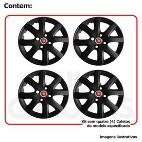 Calota em Plástico de Alta resistência, Fabricado pela Grid Calotas com os mesmos padrões e exigências da montadora. Com logotipo incluso. SERVE: Fiat Palio - todos Fiat Uno - todos Fiat Siena - todos Fiat Fiorino - exceto nova fiorino Fiat 147 - todos Fiat Elba - todos Fiat Oggi - todos Fiat Panorama - todos Fiat Prêmio - todos CARACTERÍSTICAS: - Fabricado em Plástico Resistente - Com dupla camada de verniz - Resistente a água e calor - Feito de acordo com os padrões da montadora - Fixação: por Parafusos - Furação: 4x100 - Cubo: Baixo - Cor: Preto Fosco - Referência: 160cb - Marca: Grid Calotas ITENS INCLUSOS: - Um 1 Kit com Quatro 4 Calotas com Emblema Incluso. DIMENSÕES Unitário - Diâmetro: 39 cm - Altura: 4 cm INSTALAÇÃO A instalação é feita de forma simples, podendo ser feita por você mesmo. Não necessita retirar todos os parafusos. de 30 dias para defeitos de fabricação. Marca: Não Informado