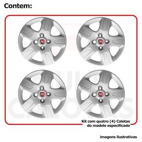 Calota em Plástico de Alta resistência, Fabricado pela Grid Calotas com os mesmos padrões e exigências da montadora. Com logotipo incluso. SERVE: Fiat Strada - todos Fiat Palio Adventure - todos Fiat Nova Fiorino - somente a nova CARACTERÍSTICAS: - Fabricado em Plástico Resistente - Com dupla camada de verniz - Resistente a água e calor - Feito de acordo com os padrões da montadora - Fixação: por Parafusos - Furação: 4x100 - Cubo: Alto - Cor: Prata - Referência: 111ca - Marca: Grid Calotas ITENS INCLUSOS: - Um 1 Kit com Quatro 4 Calotas com Emblema Incluso. DIMENSÕES Unitário - Diâmetro: 39 cm - Altura: 4 cm INSTALAÇÃO A instalação é feita de forma simples, podendo ser feita por você mesmo. Não necessita retirar todos os parafusos. de 30 dias para defeitos de fabricação. Marca: Não Informado
