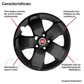 CARACTERÍSTICAS: - Fabricado em Plástico Resistente - Com dupla camada de verniz - Resistente a água e calor - Feito de acordo com os padrões da montadora - Fixação: por parafuso - Cubo: Padrão - Cor: Preto - Referência: 301CP - Marca: Grid Calotas